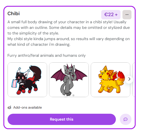 The prices are listed here so that you can see vaguely how much they cost even when my commissions are closed